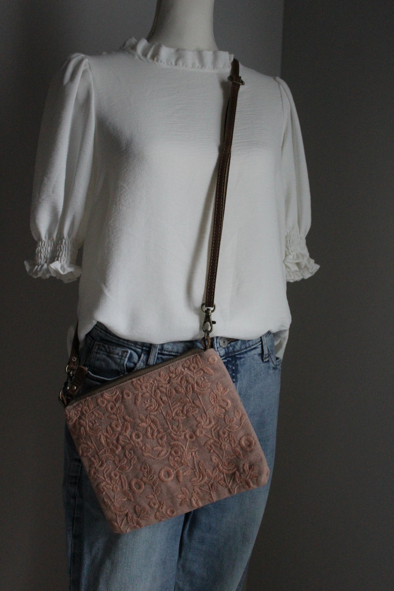 The Vintage Garden Crossbody Bag is a charming mix of practicality and style. Featuring a soft floral-embroidered front, adjustable strap, and secure zip closures, this compact bag is perfect for everyday wear. The neutral blush tones make it easy to pair with any outfit, while the interior and back zipper pockets keep essentials organized.
