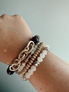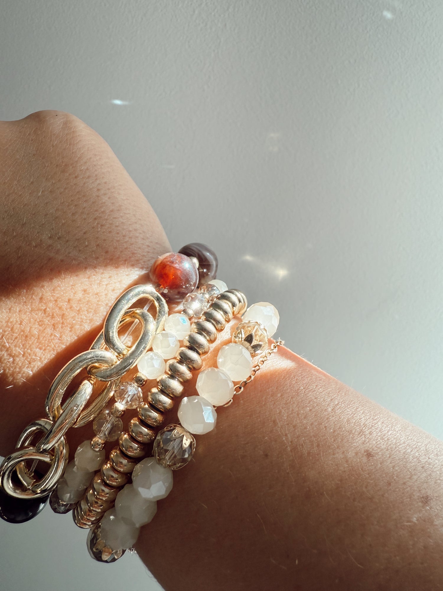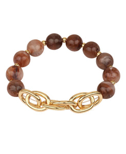 Elevated and earthy, the Marble Bead + Gold Chain Bracelet blends rich marbled beads with a bold gold link detail for the perfect mix of softness and shine. Each bead features warm brown and caramel swirls that feel timeless and neutral, making this bracelet an easy everyday accessory that adds a polished touch to any outfit.