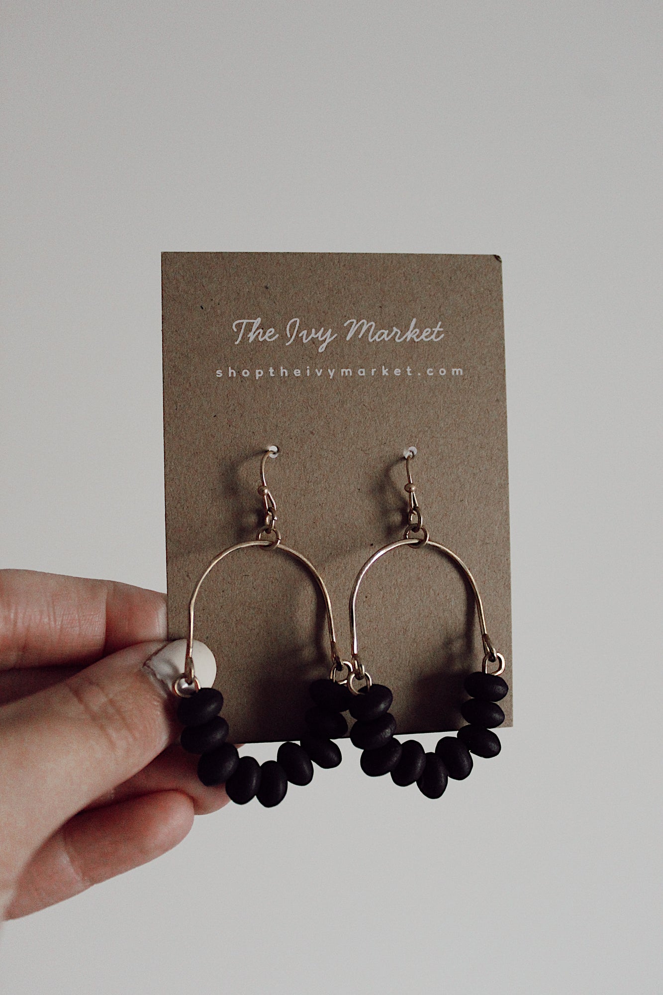 Simple, chic, and just a little spooky. These matte black wood bead hoops are lightweight and modern, pairing perfectly with any Halloween look or everyday outfit.